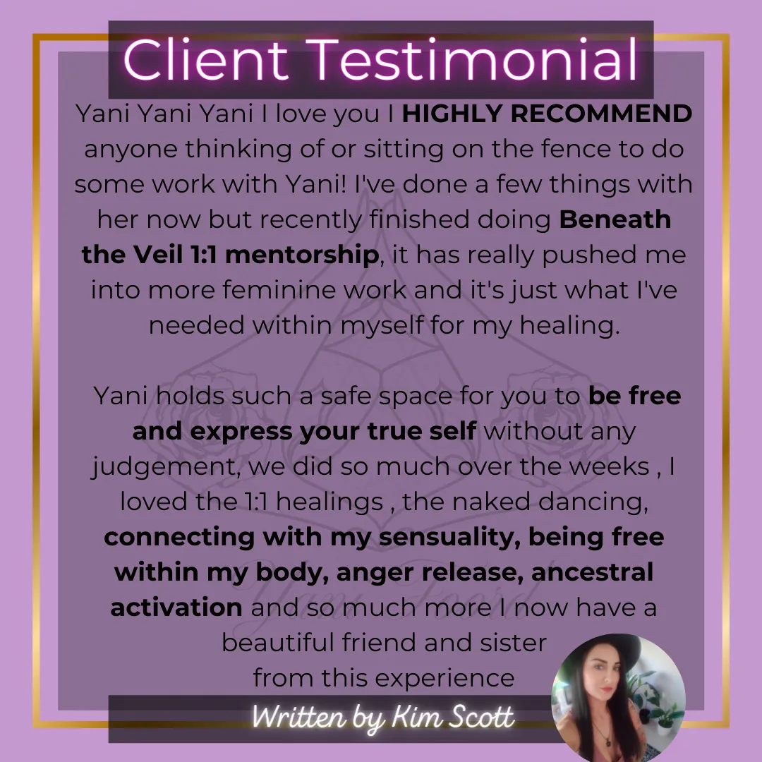 Having walked her own path of transformation for over seven years, Yani knows firsthand the power of this work. Today, she stands in her power — embodying devotion, truth, sensitivity, love, connection, and radical self-responsibility.