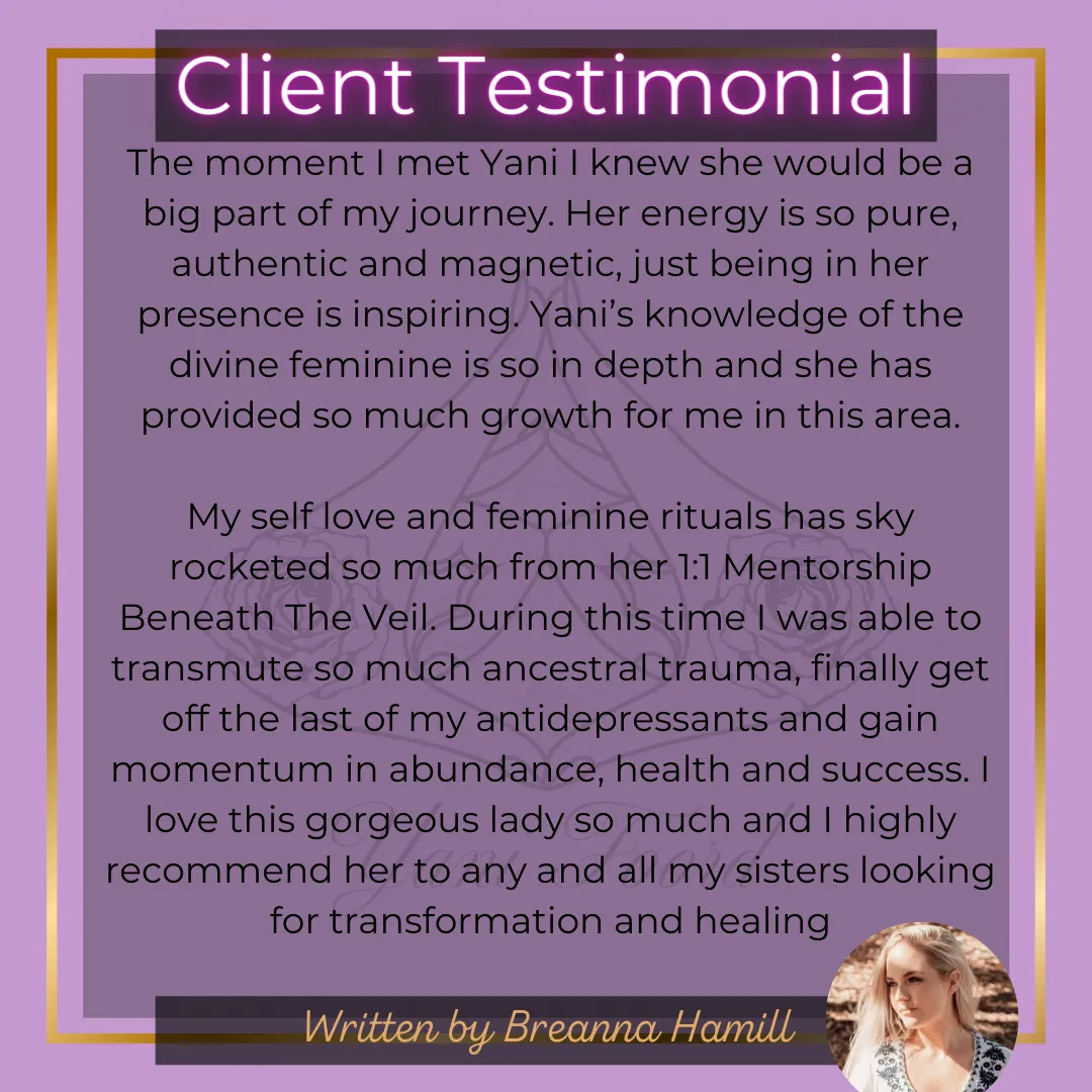 Yani is a Women's Empowerment Coach devoted to guiding women on the journey of awakening their feminine essence, deepening intimacy, unlocking vitality, and embodying their soul's true expression.